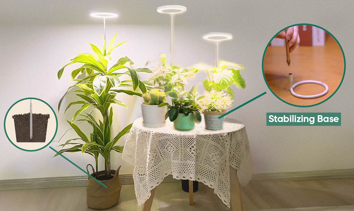 Medium size light includes a stable base to prevent tipping, ensuring even the tiniest plants get their needed share of light.