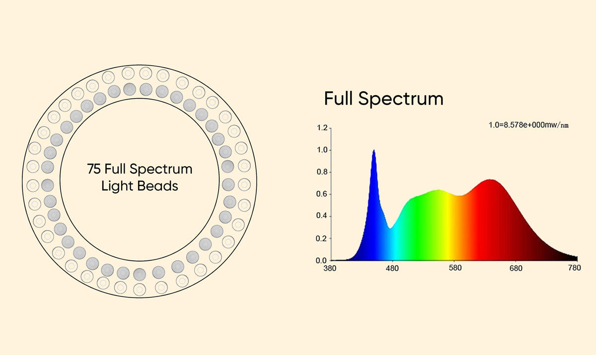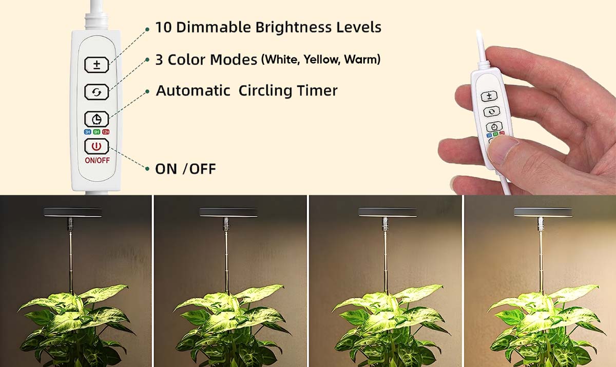 Equipped with a convenient auto-timer (3h, 9h, 12h) for hands-free operation and cost efficiency. Features 75 bright LEDs with 10 dimmable settings, catering to various plant needs.